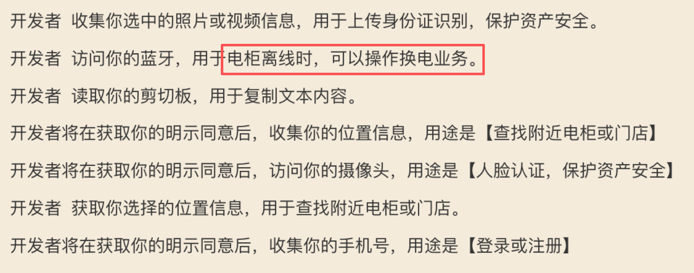 我们是骑手换电行业的,换电柜在离线的情况,可以使用蓝牙进行换电。填写隐私安全的蓝牙接口,一直不给通过,改了好几次了,能不能具体给出原因。