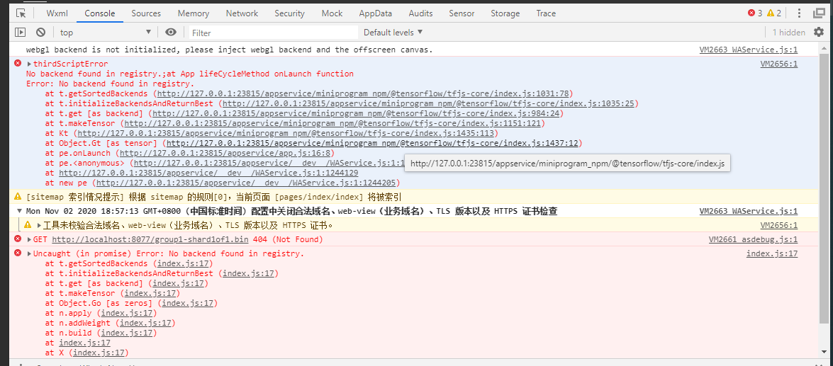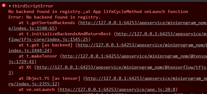 第二必须加入npm @tensorflow/tfjs-backend-webgl //这个包,在后台去安装就可以解决