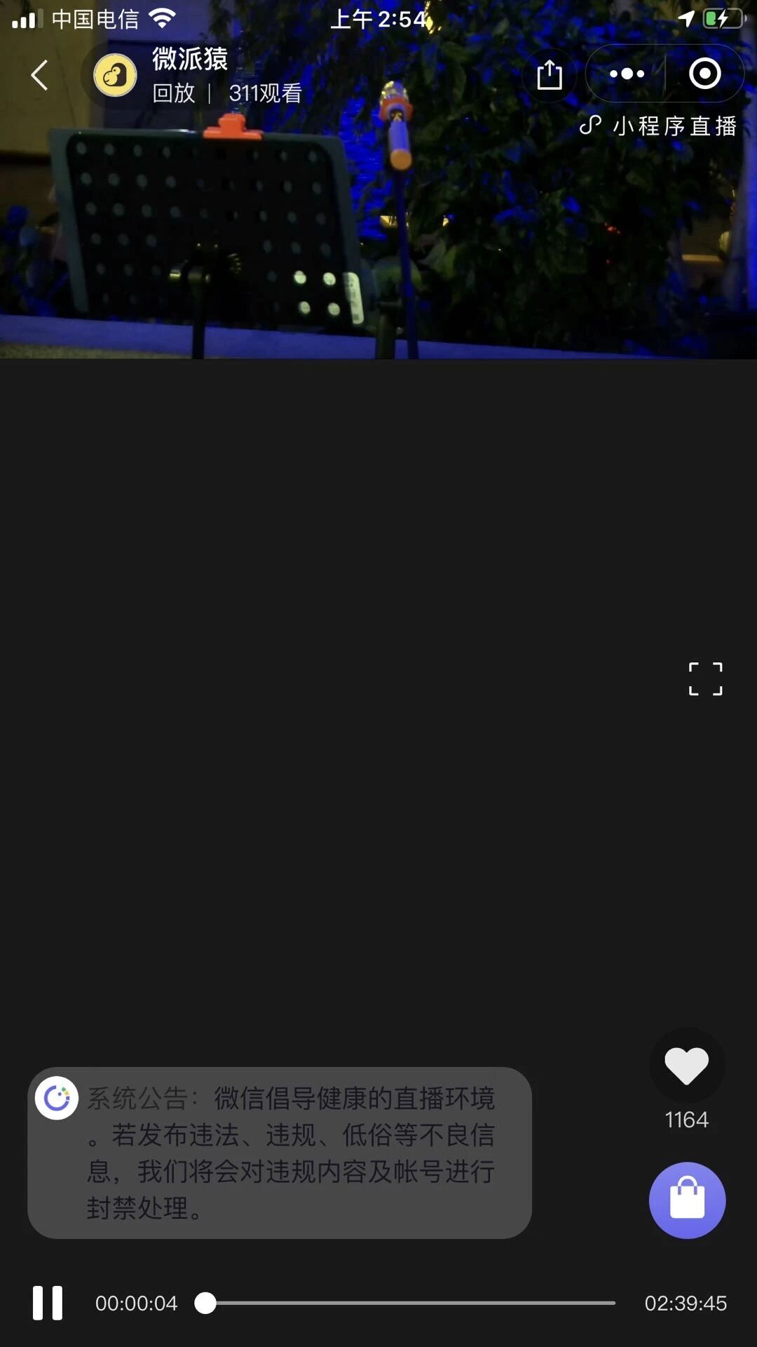 用推流横屏直播,回放视频显示在顶部