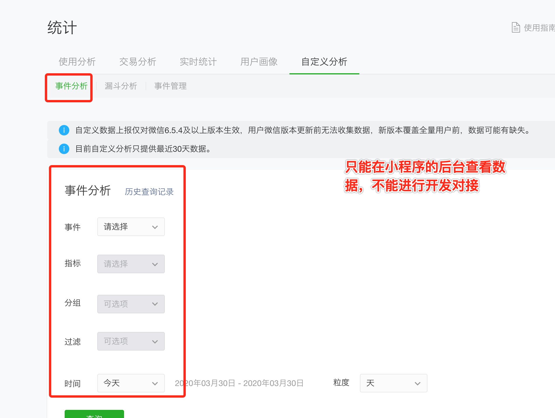 小程序提供了,自定义分析的功能