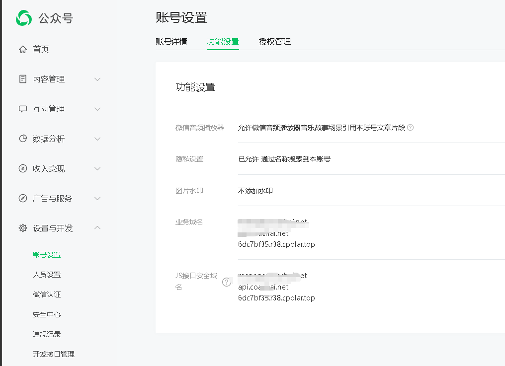 需要配置「网页授权域名」,并不是你图中的「JS接口安全域名」哈。