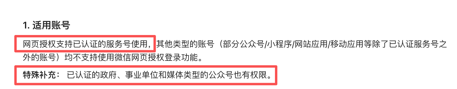 一般是已完成微信认证的服务号才支持网页授权功能,可以在 服务号后台 https://mp.weixin.qq.com/ -> 设置与开发 -> 账号设置 -> 功能设置 里面看到「网页授权域名」的配置入口。