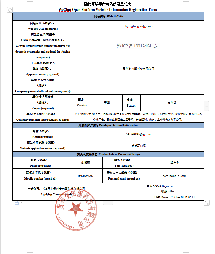 未通过您的应用审核被驳回。 驳回原因:你好,你提交的《微信开放平台网站信息登记表》的主办单位与账号主体信息不一致,审核不通过,需提供相关授权书(加盖两个公司的公章)以供审核。注:授权书可在扫描文件处提交