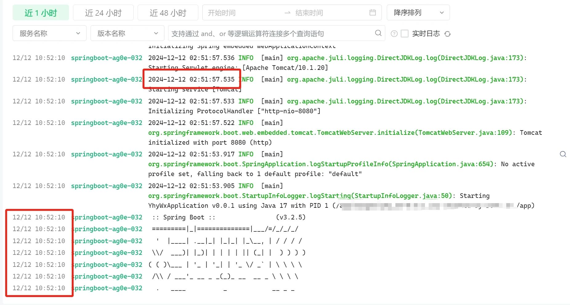 云托管部署的springboot打印的时间和云上面显示的日志的时间不一致??