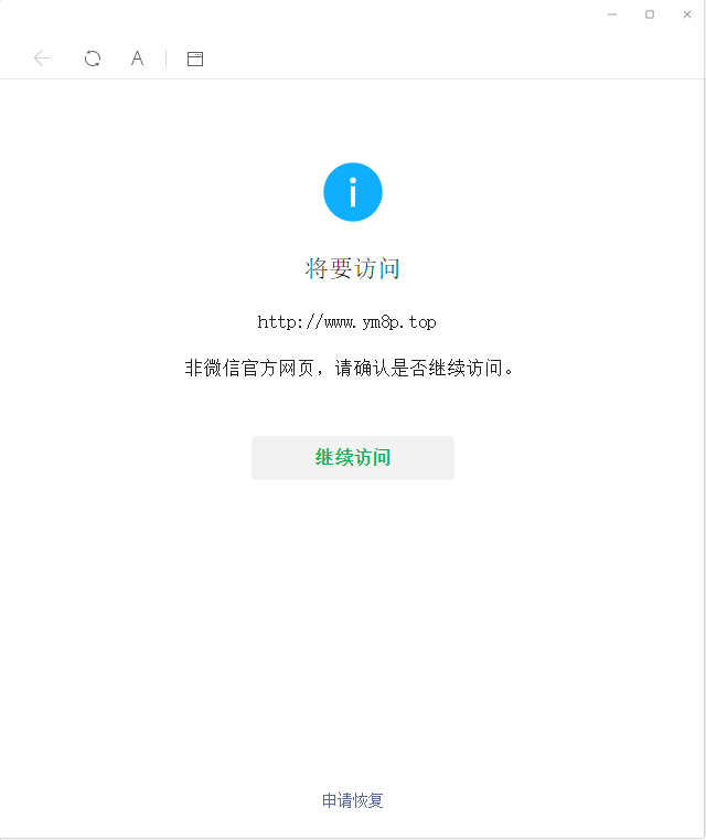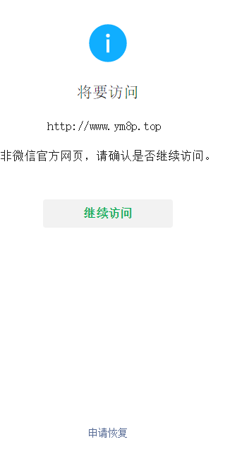 在微信打开网页www.ym8p.top提示非微信官方网页,请确认是否继续访问,已经备案了,并且也进行了申诉,但是还是提示非官方网页,这要怎么解决?
