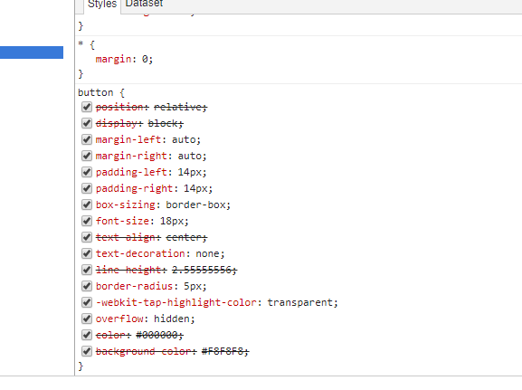 打开调试工具,发现按钮的原本的样式也没这个,不知道咋回事求大神解答