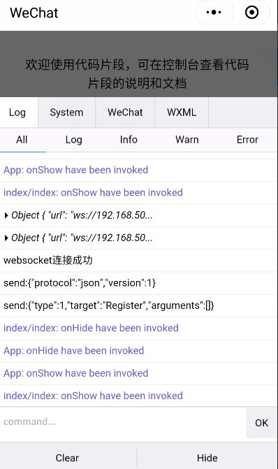 我打开调试模式了。关闭了域名校验,可以连接局域网地址的。 不然怎么能连接成功还能接收到