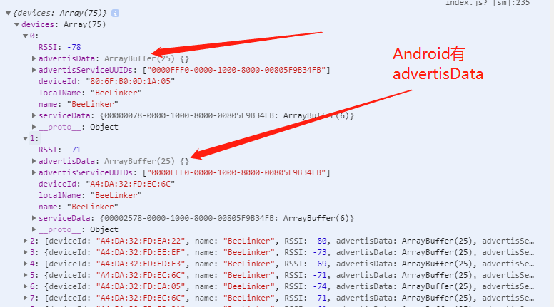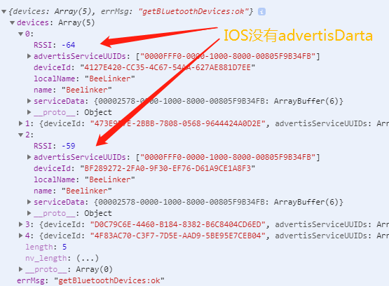 你好,请检查从机端的manufacturerData的编码是否正确,确认是否缺少结尾的"="填充符,安卓底层编码允许该填充符的缺失,但是iOS要求是完整的base64编码