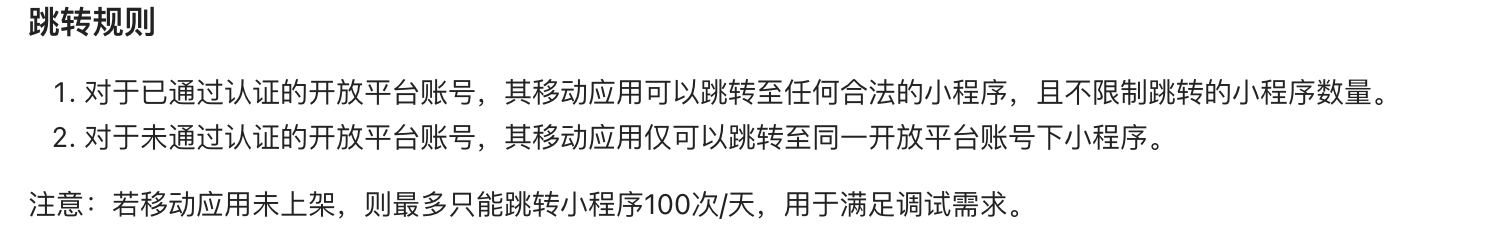 1、公司旗下两个主体,注册了微信开放平台A、B,其中小程序C绑定到了A,而APP(D)却使用了B的移动应用;可以实现D跳转到C吗;