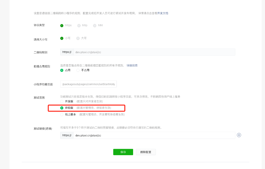 是不是还没有上线啊,看配置测试范围是体验版,你弄成开发版试试