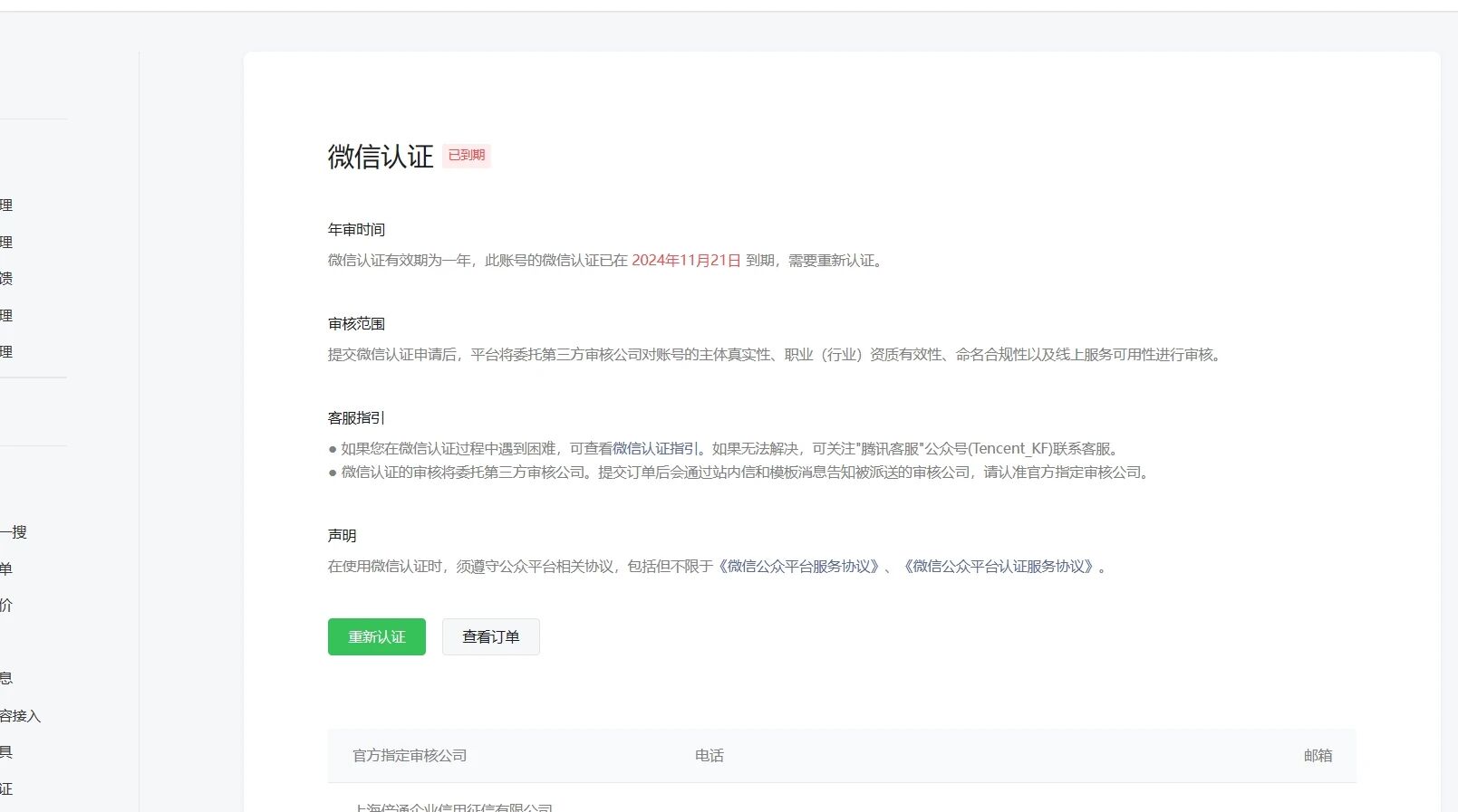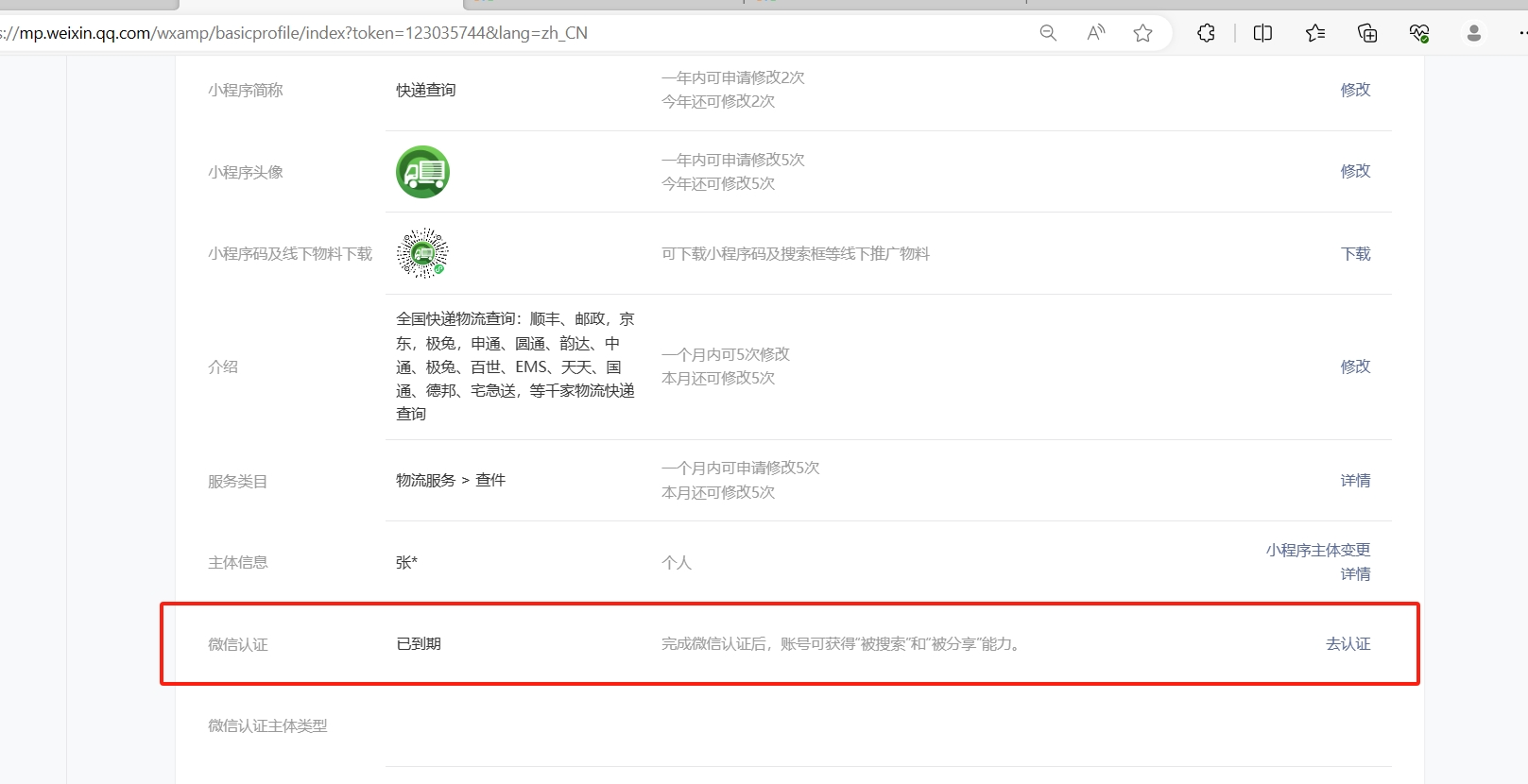 你点击微信认证那,看看是否需要年审,可能是没有更新过来