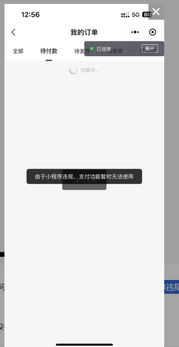 目前还在体验版测试阶段,在开发版上扫码支付没问题,但是在体验版上点击会出现:“由于小程序违规,支付功能暂时无法使用”,请教如何解决