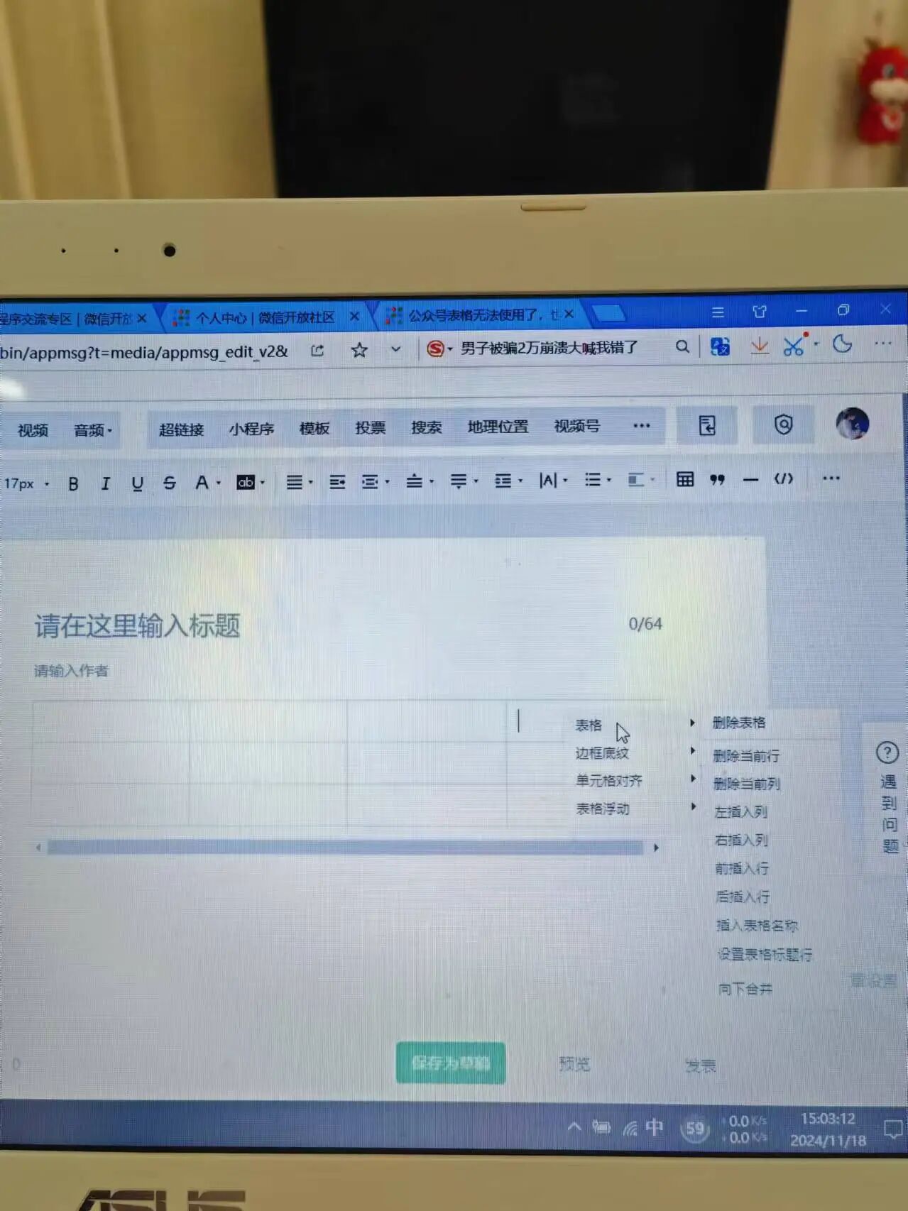 公众号表格无法使用了,也没有显示表格属性?改版了还是表格错乱了?