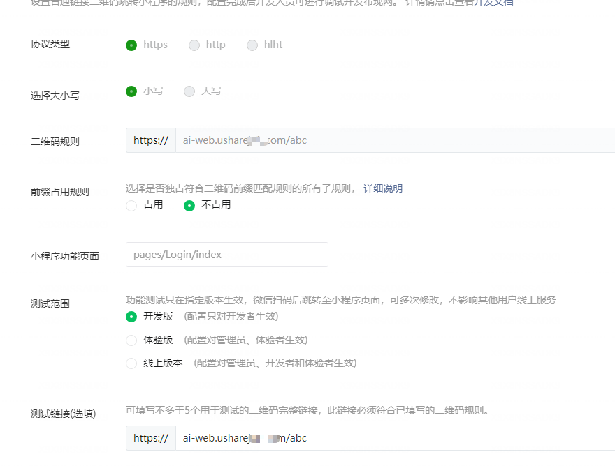 这个是测试用的二维码,此码属于第二次扫码,应该是需要打开我指定的小程序页面的: