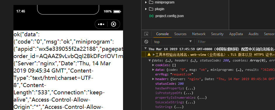 开发的是插件模式,没法看到真机调试信息,只是请求失败