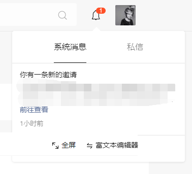 社区文章编辑器中的切换编辑器按钮和全屏按钮比消息的层级要高