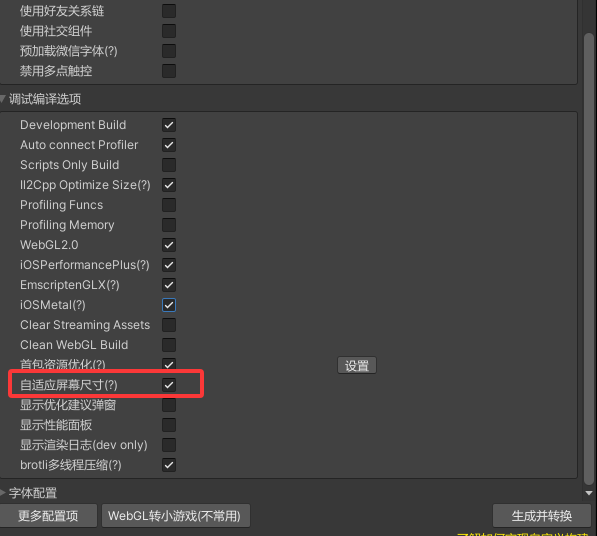 1、导出小游戏勾选“自适应屏幕尺寸”