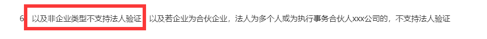 第二:若企业为合伙企业,法人为多个人或为执行事务合伙人xxx公司的,不支持法人验证