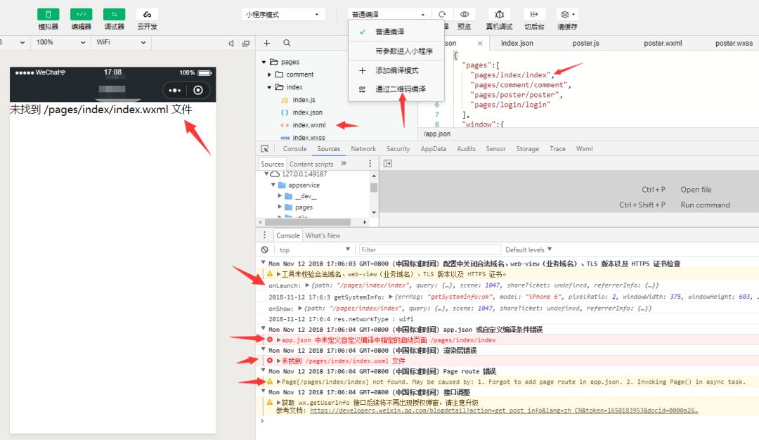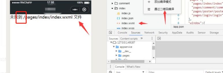 通过api获取小程序码后,保存到本地,然后再开发者工具上"通过二维码编译"后报错: