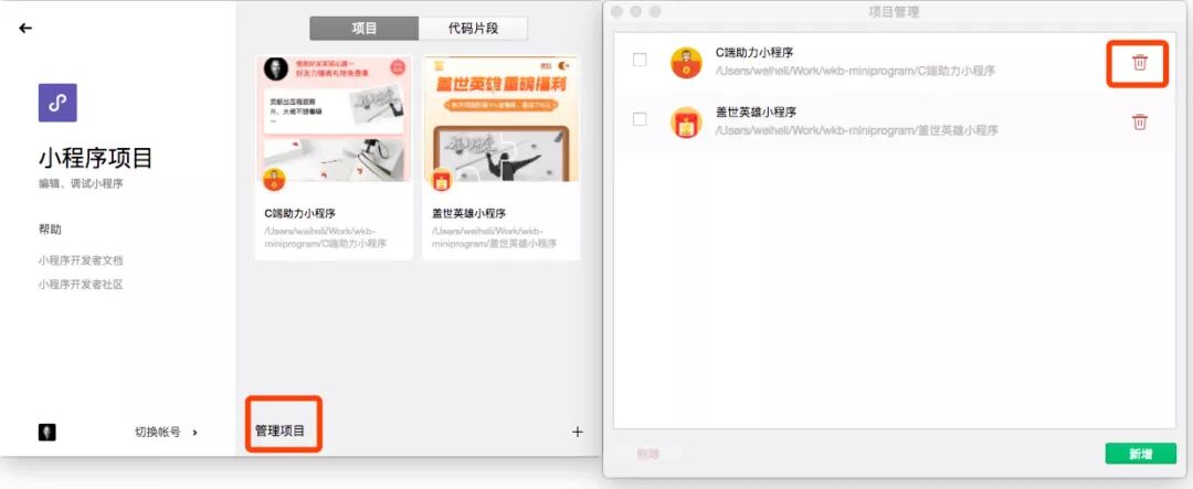 在开发工具中删除,“管理项目”,“删除”,然后重新打开项目就可以了