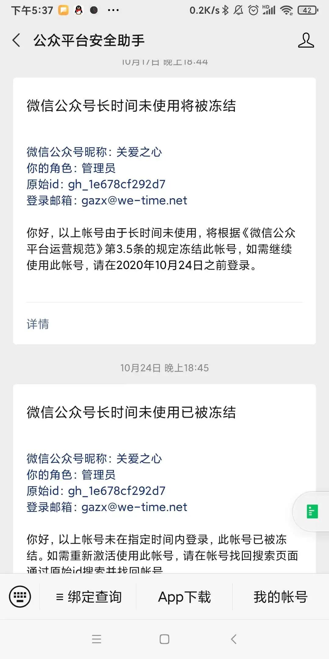 我的微信号提示“微信公众号长时间未使用已被冻结”。