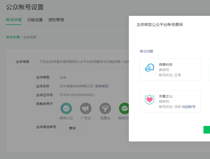 看着提示内容是“账号户名不符”啊,又看了下楼主公众号,显示的主体名是长沙微泰科技有限公司,个人建议核对一下名称是否一致。