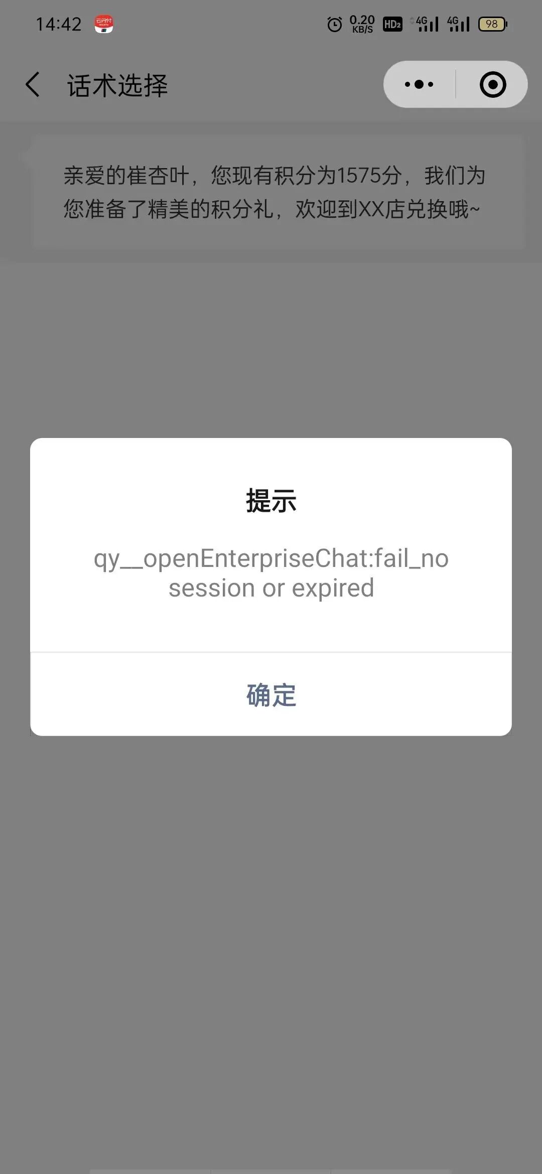 登录小程序时验证session_Key 未过期 后续调用openEnterpriseChat 报错 qy_ openEnterpriseChat:fail_ no session or expired