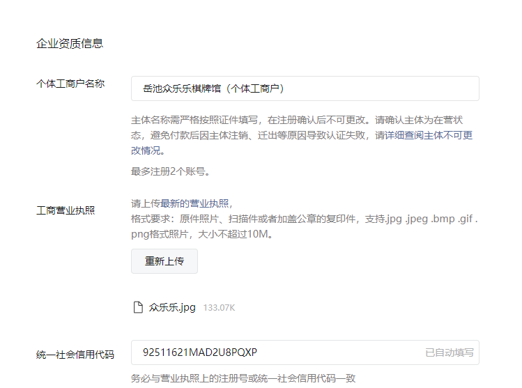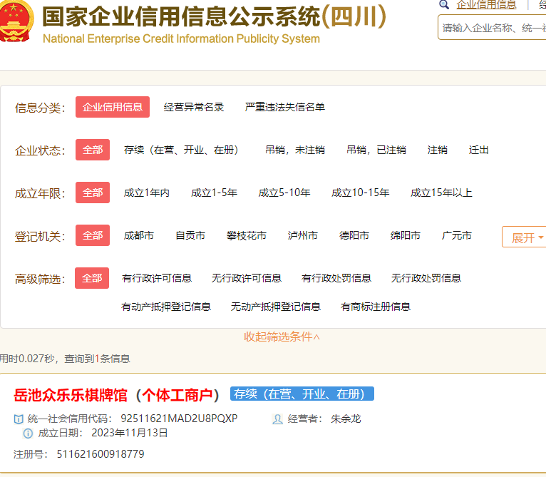 个体工商户名称:岳池众乐乐棋牌馆(个体工商户)