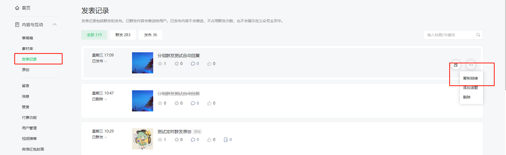 公众号里面的自定义菜单内容更换了最新发布的作品,为什么手机上显示的还是老的内容。