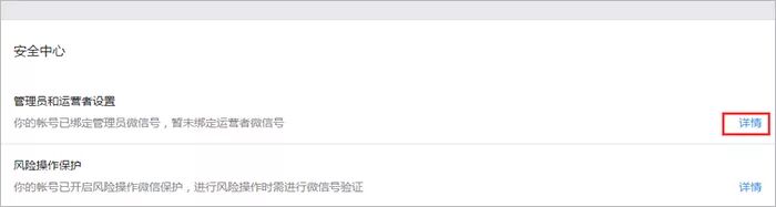 第一步:点击安全中心->管理员和运营者设置->详情;