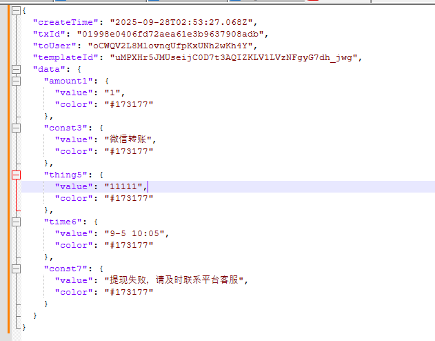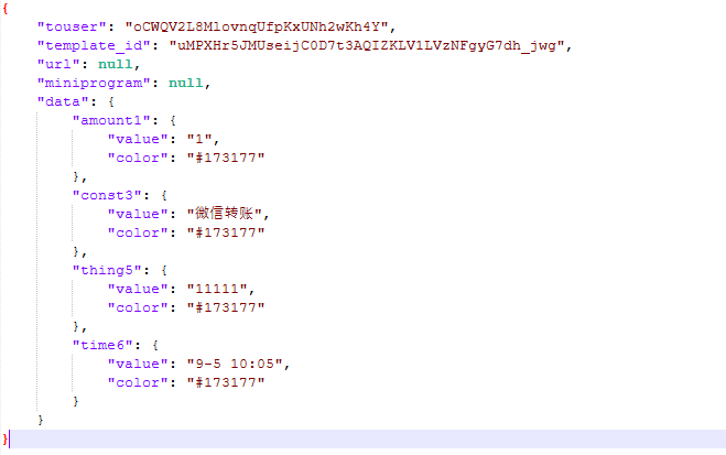 我其他消息模版都能正常用,就这个不行,不可能是token问题,入口token都是同一个地方获取,模版id也没问题,现在明确是通了,但是参数不知道为什么报错