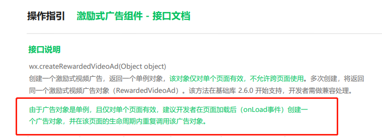 文档里面写着建议在页面加载后就创建广告对象,但是又说广告对象创建后会拉取一次广告。