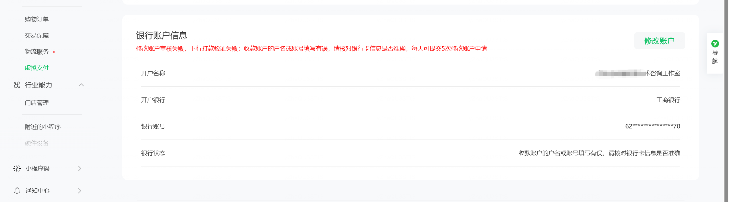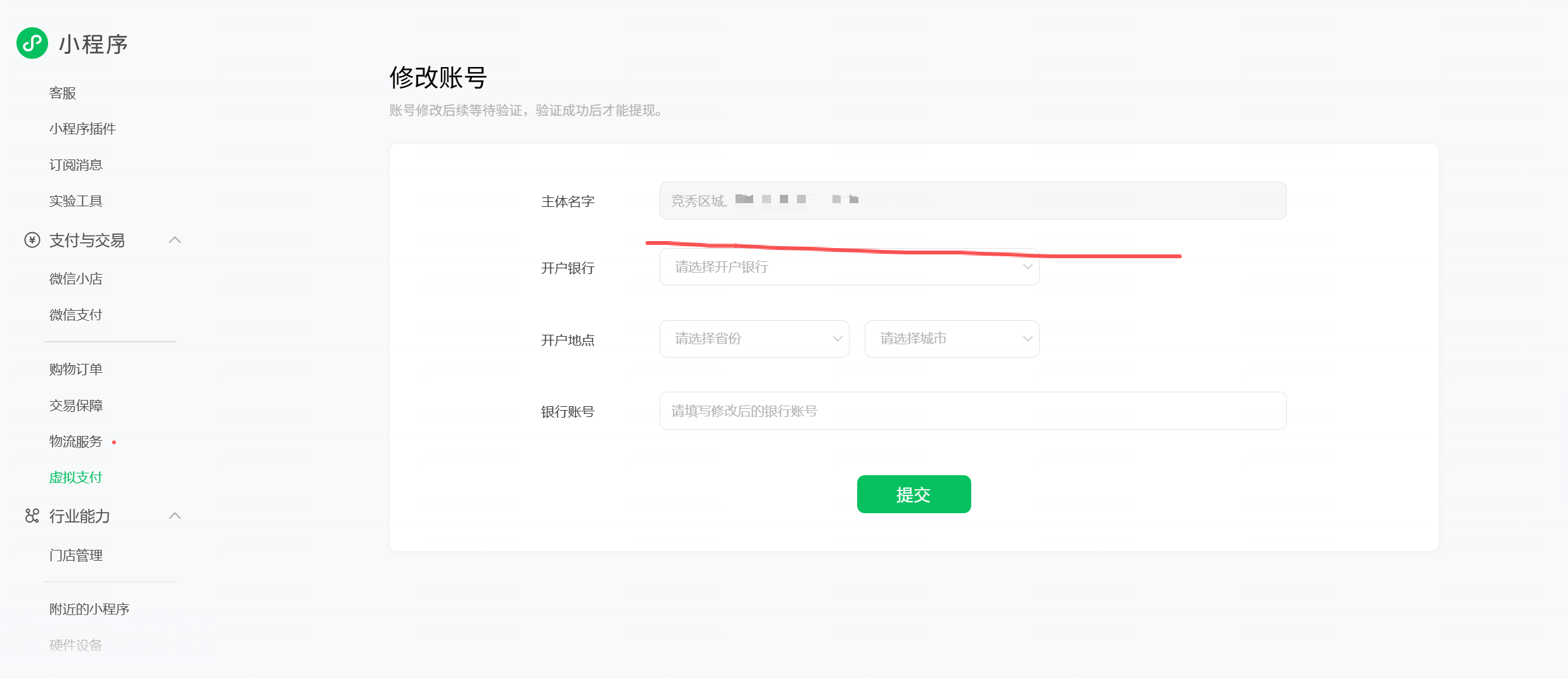 见字问好:虚拟支付开通,可以设置结算账户时,选成了对公结算,个体执照无对公。导致微信支付商家那失败。想转为个体无法切换了,咋整。怎么修改主体