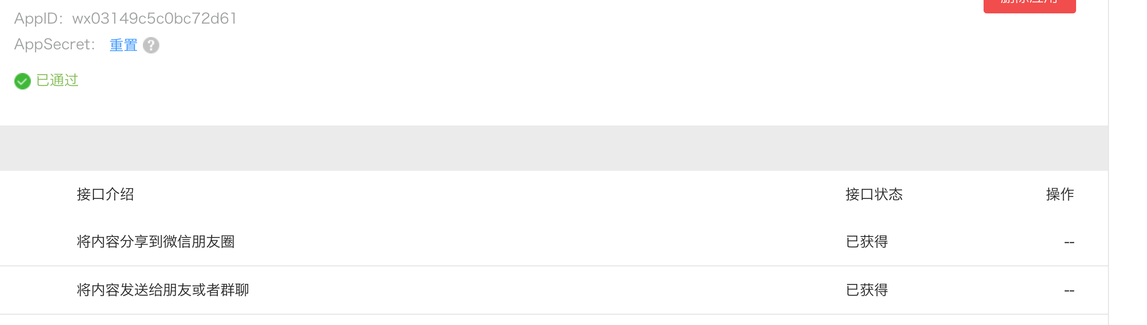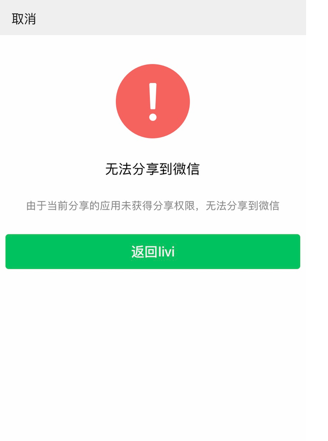 应用对应的分享权限已经获得,已确认appid/appSecret正确填写,但是只能分享链接类型;分享文本、图片就会提示未获得分享权限,无法分享到微信
