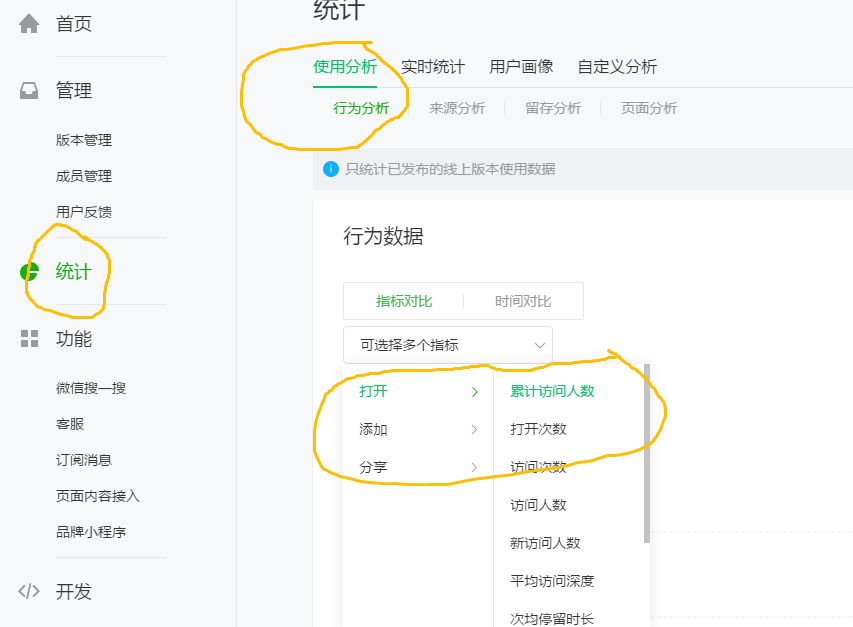 累计独立访客(UV)不低于1000,这个在哪来看呢?小程序数据助手上没看到这个指标