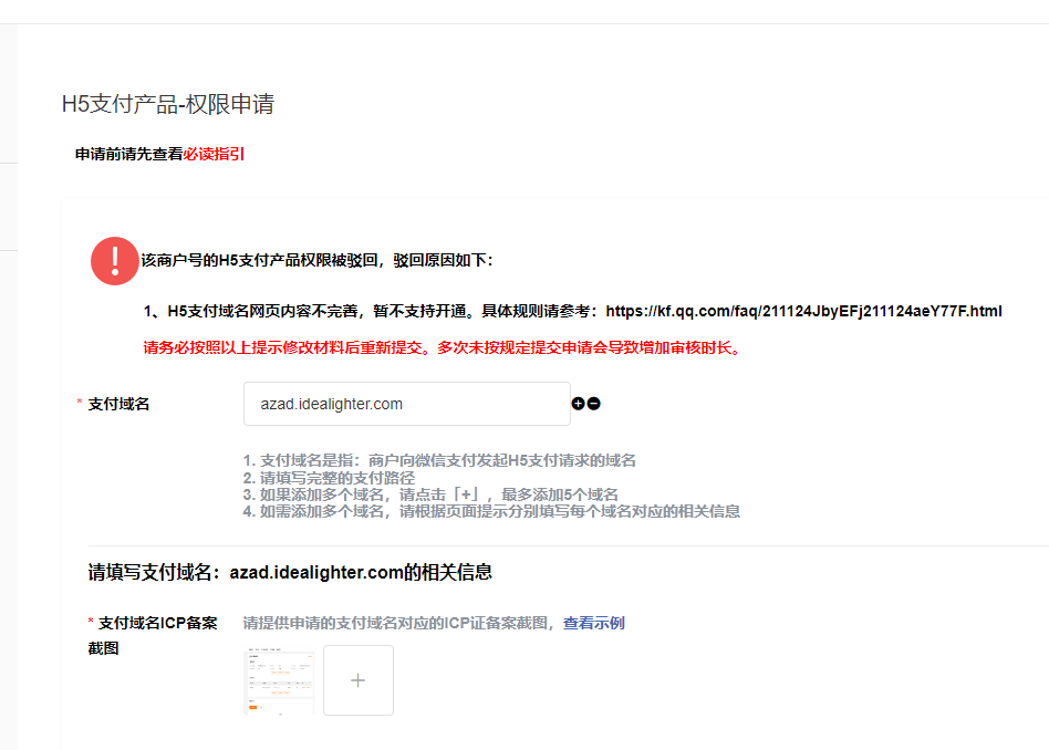现在申请微信H5支付一直不能通过,对此我有两个问题,麻烦帮我解决一下