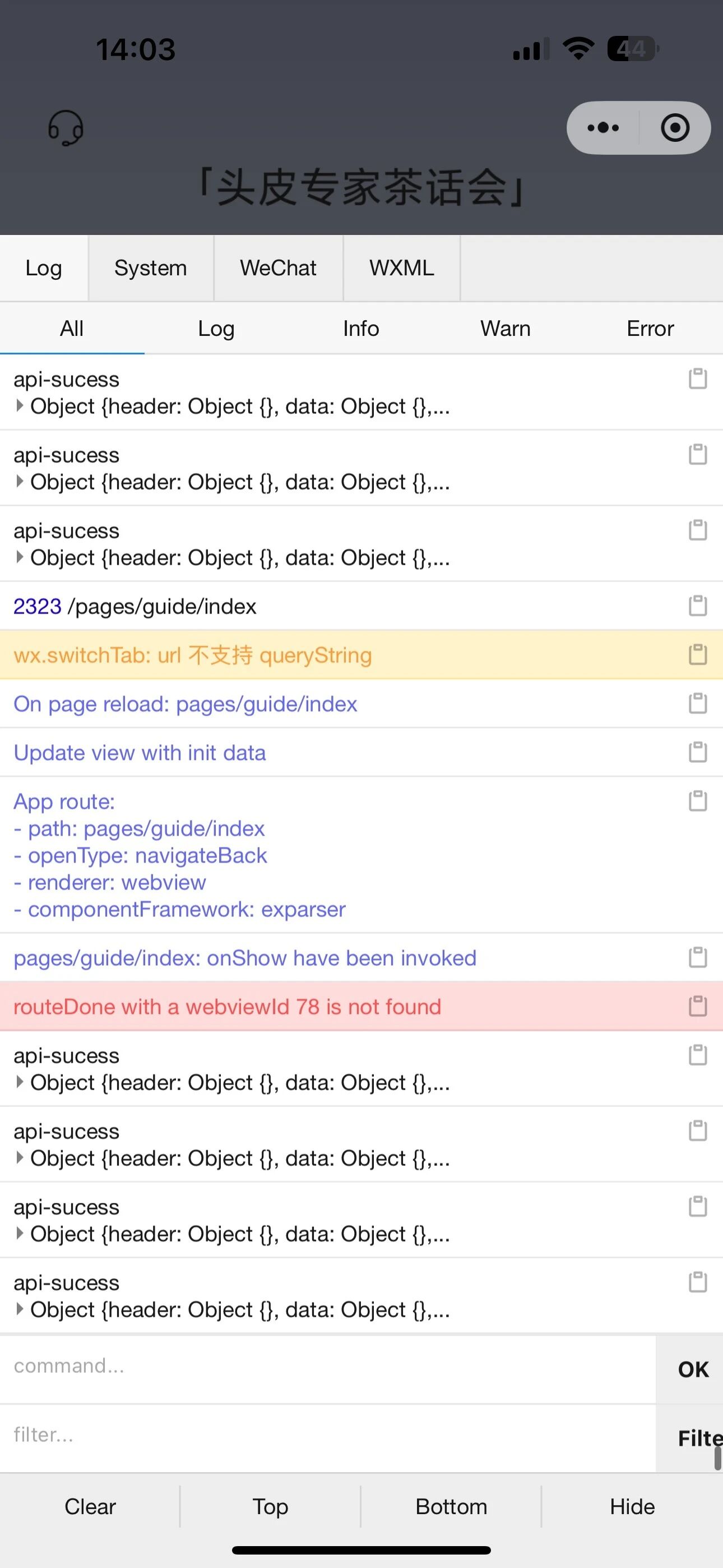 打开小程序使用switchTab路由更换一次之后,小程序就报这个错误,而且页面所有按钮点击事件全部失效,重新进入小程序之后小程序正常使用