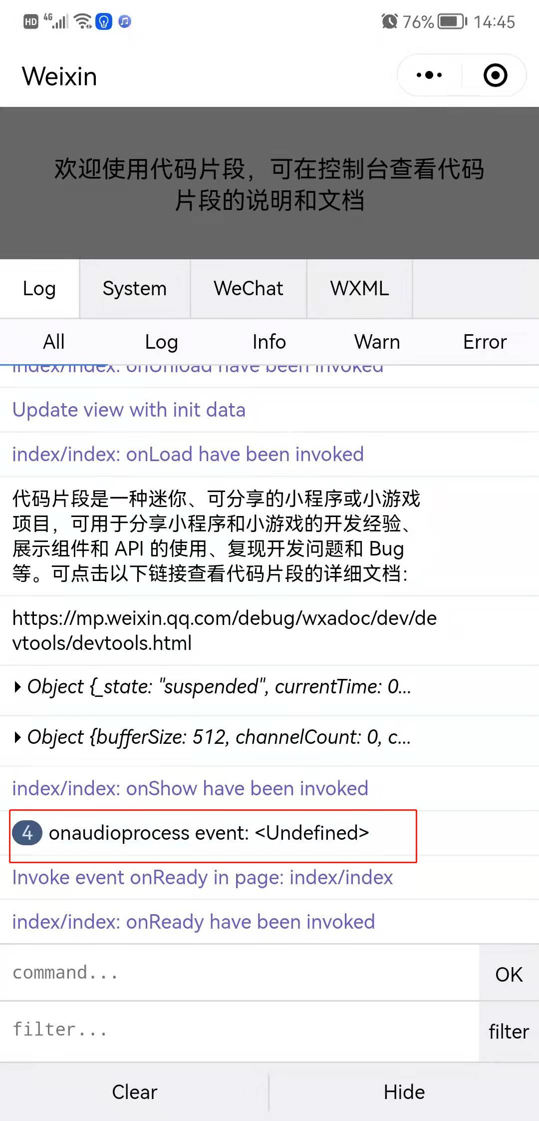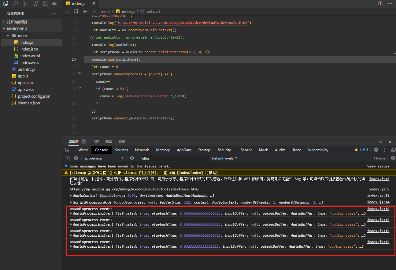 您好。。ScriptProcessorNode的onaudioprocess回调,在开发工具里面可以获取到参数值,,但是真机上就获取不到。。