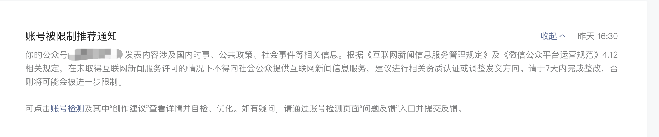 发布新闻信息通知被限制推荐了,整改的话是只能删除文章吗?