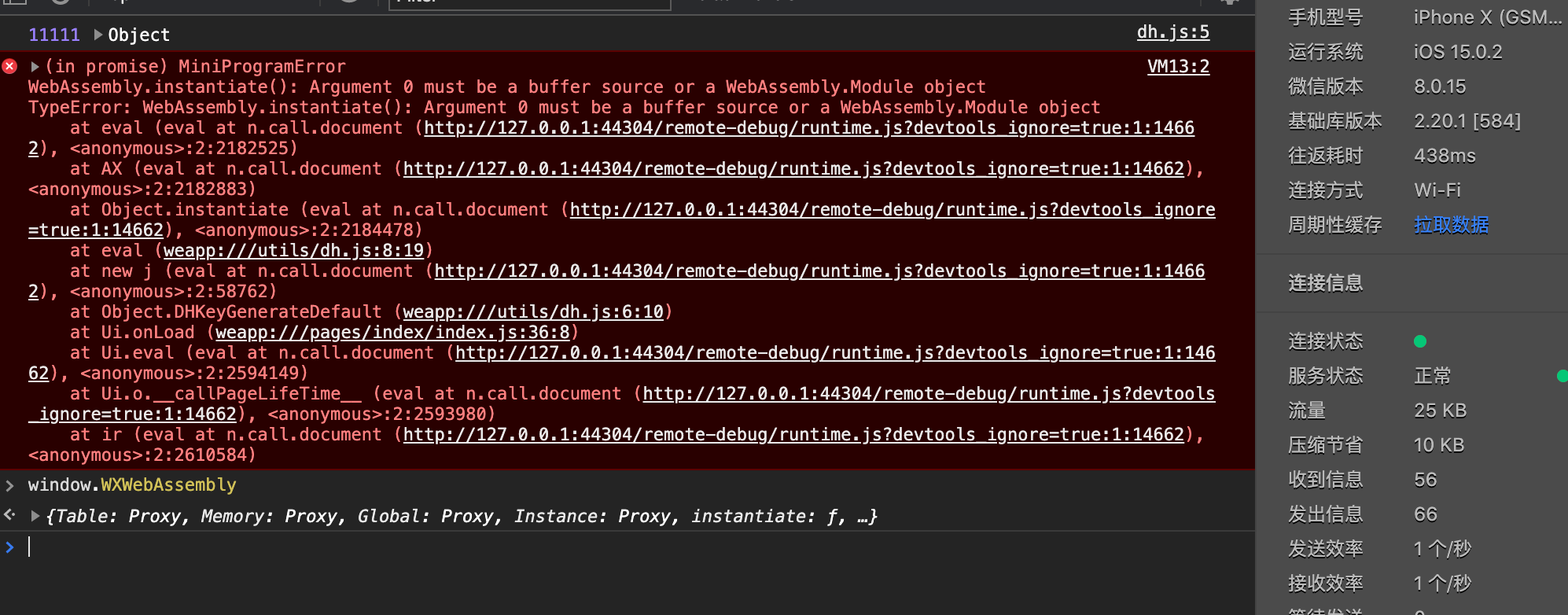 请问下为什么真机上WXWebAssembly.instantiate 不能使用,我打印了WXWebAssembly 显示