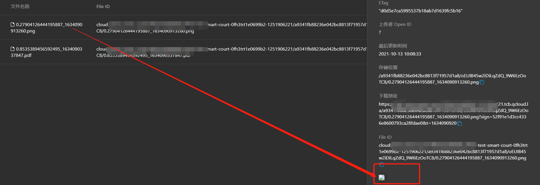 上面的base64文件是一个正常可预览的png图片,通过云函数上传到云存储后就不能正常预览了