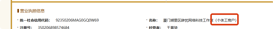 你的主体名称后面少了(个体工商户)