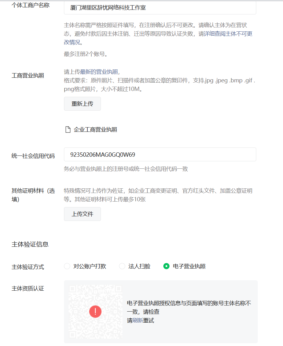 这个问题怎么解决 法人扫脸也不通过 我确定名称信息 信用代码是一致的 营业执照也超过15天了
