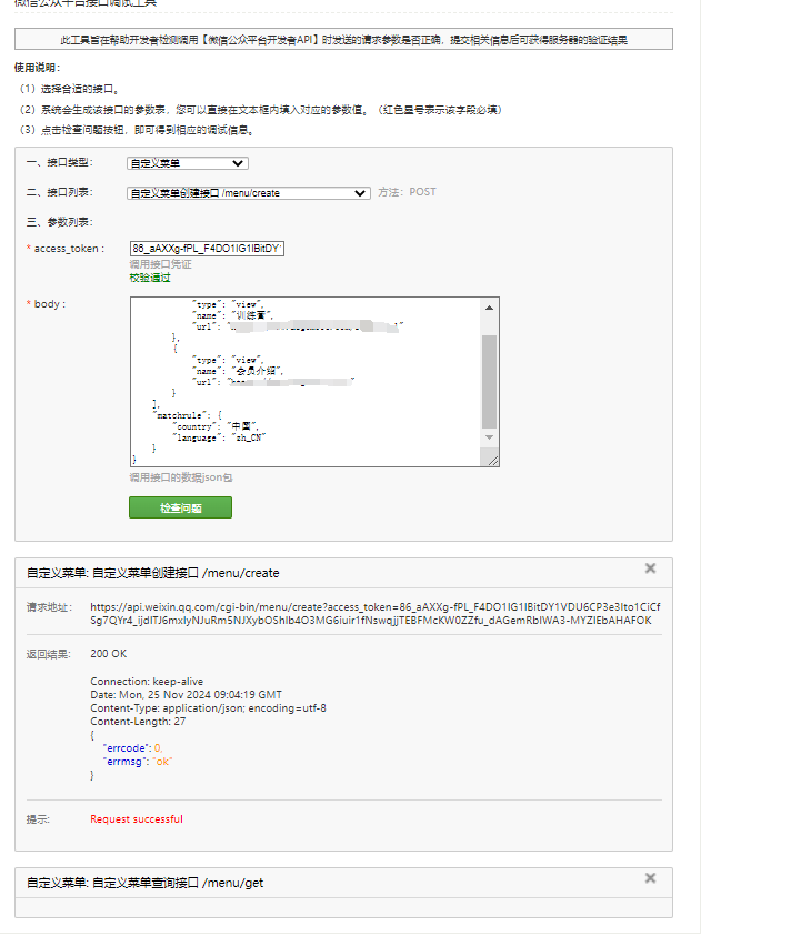 1、country 和 language 字段已经废除,填写会报错 65320 ,可参考文档:https://developers.weixin.qq.com/doc/offiaccount/Custom_Menus/Personalized_menu_interface.html