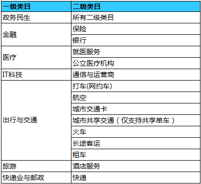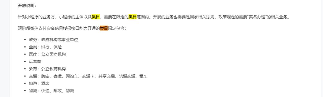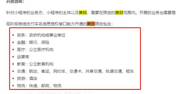 官方文档并没有说明开放的服务类目。。。求解答。