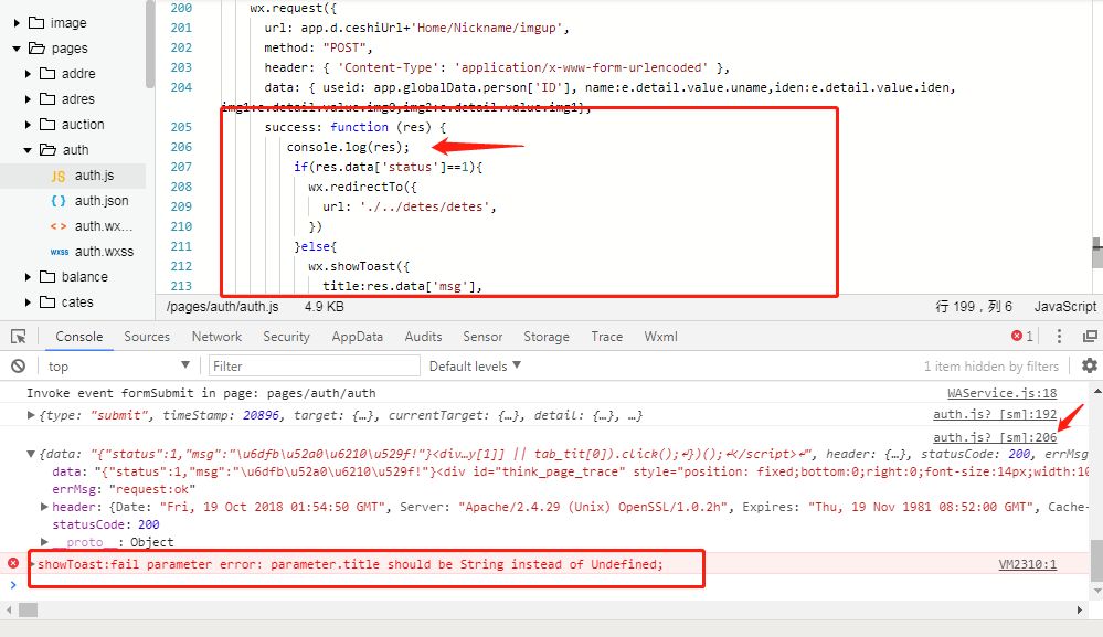 VM2310:1 showToast:fail parameter error: parameter.title should be String instead of Undefined;