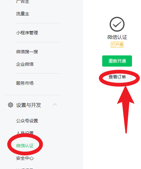 设置与开发——微信认证——查看订单