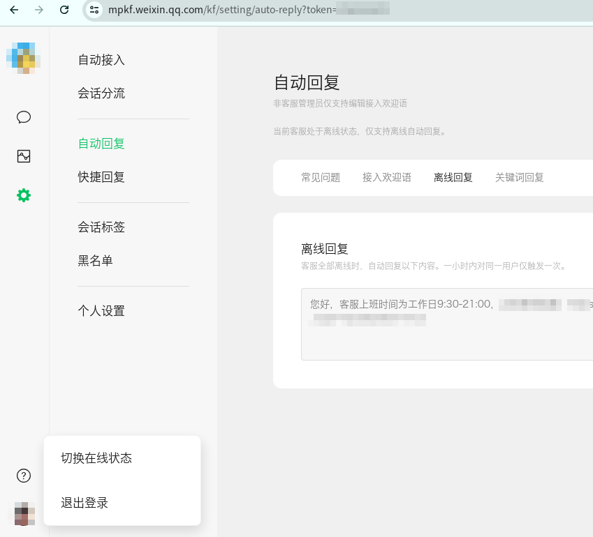 设置了离线自动回复, 全员都是离线状态, 但是离线自动回复未生效, 用几个用户试了都不行.