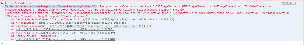 想问一下,使用query获取的2d canvas 能使用drawImage吗?我这段代码老是报下面的错。大神们帮忙分析一波。