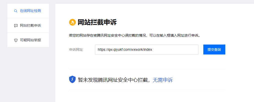 从微信打开网址https://qw.qiyukf.com/wxwork/index提示:非微信官方网页,请确认是否继续访问,应该如何解决?无法通过申诉解决